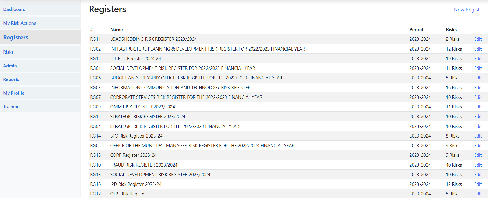 RiskReg is an online system to assist with the successful implementation and execution of the Public Sector Risk Management Framework